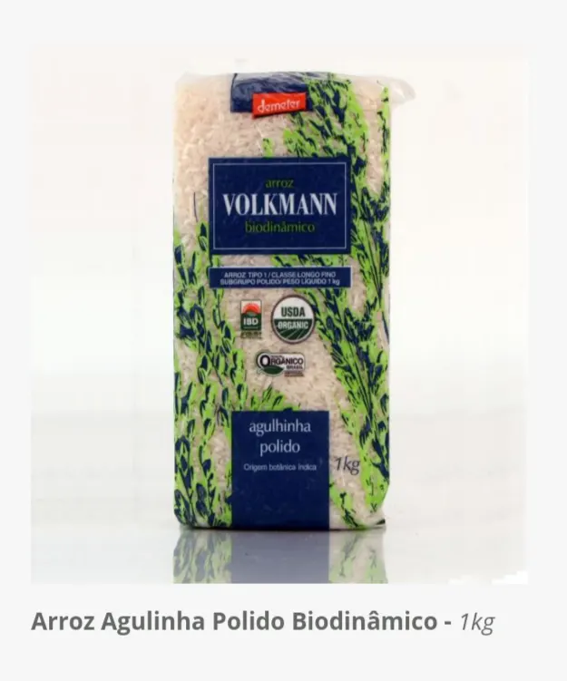 Arroz agulhinha branco orgânico biodinâmico vácuo 1kg Volkmanm